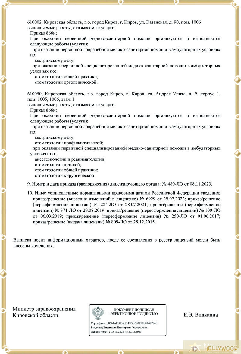 Диапазоны цен на приём врачей и специалистов, услуги и диагностику в Детская стоматология Голливуд на Упита в Кирове.