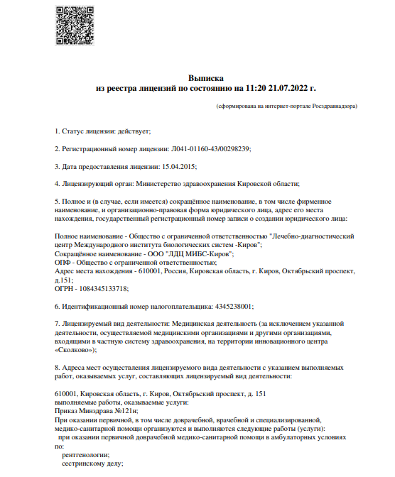 Диапазоны цен на приём врачей и специалистов, услуги и диагностику в ЛДЦ МИБС в Кирове.